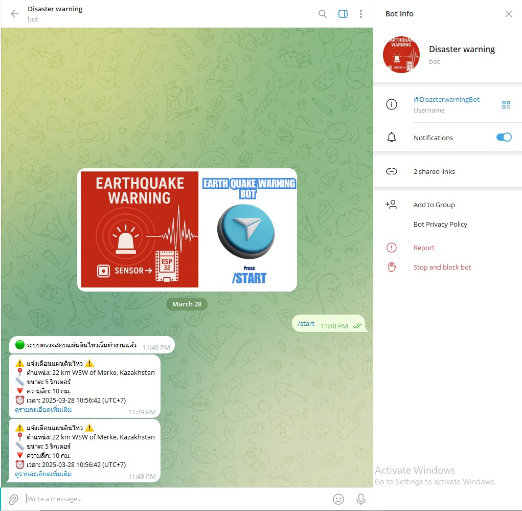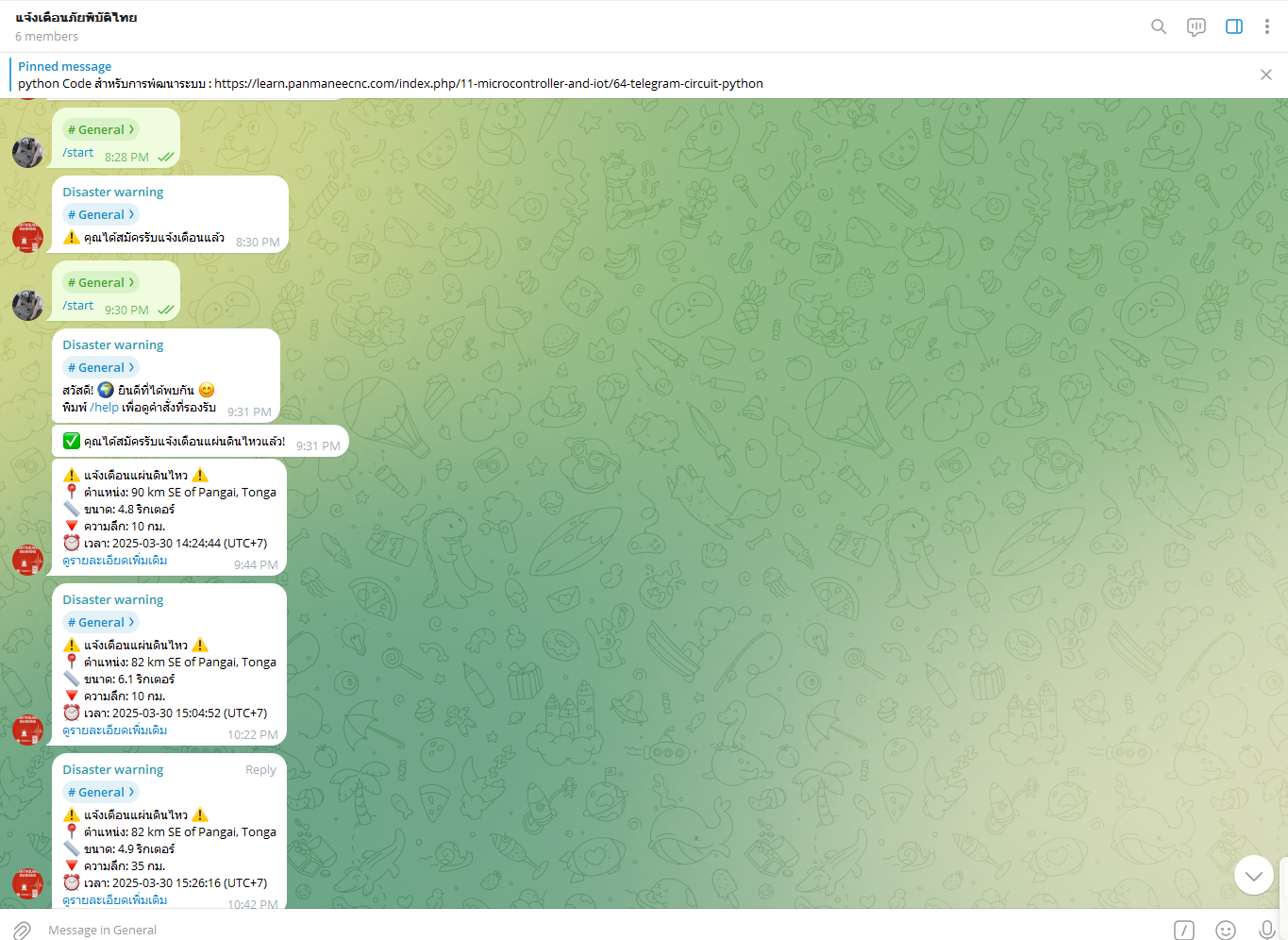 Telegram ส่งข้อความแบบ Real-time รับการแจ้งเตือนทันทีที่เกิดแผ่นดินไหว ไม่มีดีเลย์