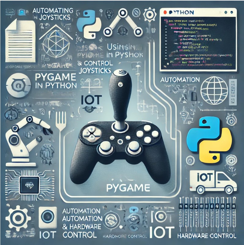 Pygame เป็นไลบรารีสำหรับพัฒนาเกมในภาษา Python ที่มีเครื่องมือสำหรับจัดการอุปกรณ์อินพุตต่างๆ เช่น คีย์บอร์ด เมาส์ และจอยสติ๊ก การใช้ Pygame เพื่อควบคุมจอยสติ๊กช่วยให้เราสามารถอ่านข้อมูลจากจอยสติ๊ก เช่น การเคลื่อนไหวของแกน (axis) ปุ่มกด (buttons) และตัวควบคุมพิเศษอื่นๆ เพื่อพัฒนาโปรเจกต์หลากหลายรูปแบบ เช่น เกม การควบคุมฮาร์ดแวร์ หรือการประยุกต์ในงานด้าน IoT และ Automation