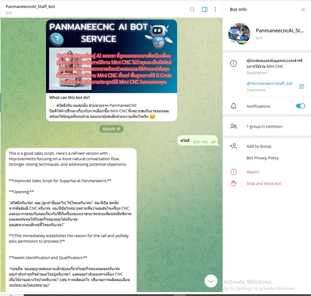 ✅ Automatic Translation: Automatically translates user input from Thai to English before sending it to AI, and translates AI responses back into Thai, enhancing ease of communication.